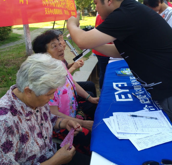 在社工的前期调查中,社会工作者发现,居民对健康方面较为关注,为更好服务居民,提供居民喜闻乐见的活动,增强老年群体的参与感,获得感,蜀峰湾社区联合蜀山区阳光公益服务中心和爱尔眼科在社区内开展关爱眼健康的眼科义诊活动。