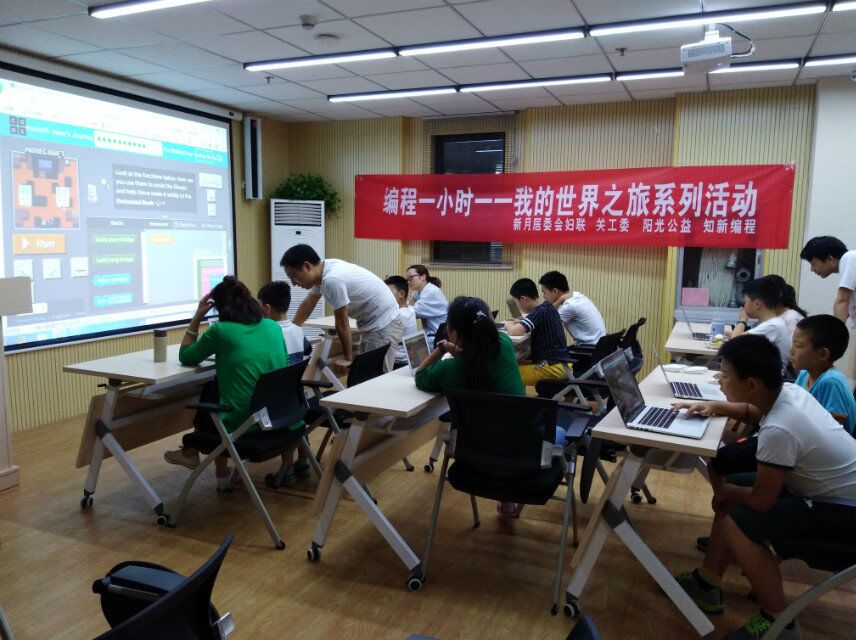 第二期《我的世界》编程一小时,在2018年6月24日下午2:00 - 5:00,在芙蓉社区居家养老服务中心里如期举行,阳光公益服务中心邀请知新少儿编程一起,给辖区青少年带来人工智能的最初感受,在电脑上为孩子们准备了一场前所未有的冒险,顺利闯关的小朋友兴奋的久久不能平静。这次我们带给孩子们的是收集信息,解决问题的编程思维。