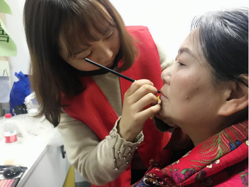 26日一大早,社区志愿者就早早赶到活动现场,提前做好相关准备工作,8点半,爷爷奶奶们在子女的陪同下陆续来到活动室排队等候。化妆师按照报名登记的顺序,依次为老人们每对老年夫妇登记、化妆、为老人们挑选婚纱、西装、唐装,现场秩序井然,充满了幸福甜蜜的味道。