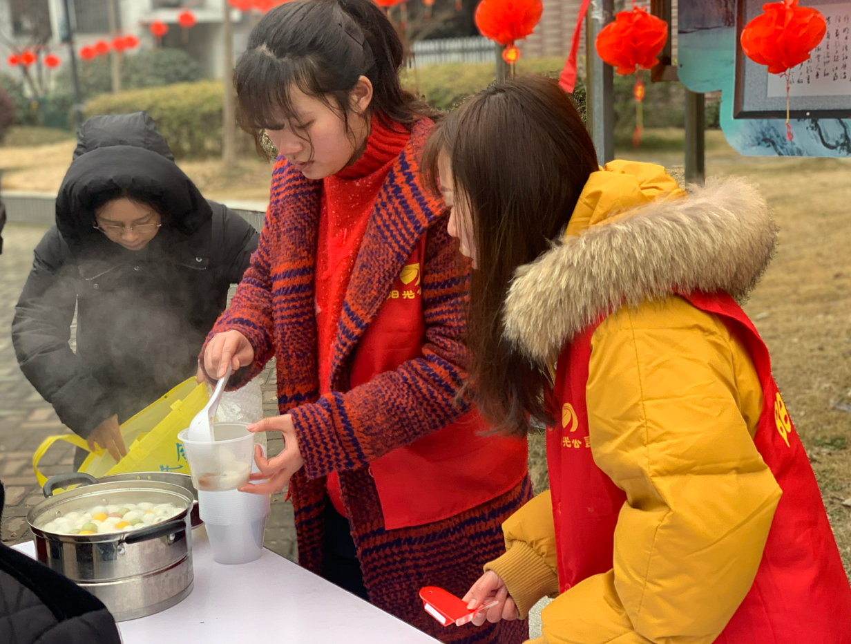组织社工、社区志愿者和居民及共建单位开展品元宵·送温馨活动,意在爱心传递。汤圆包好后,将煮熟的汤圆分袋装好,由共建单位和社区工作人员将煮熟的元宵分发给居民品尝,增加节日温馨的氛围。