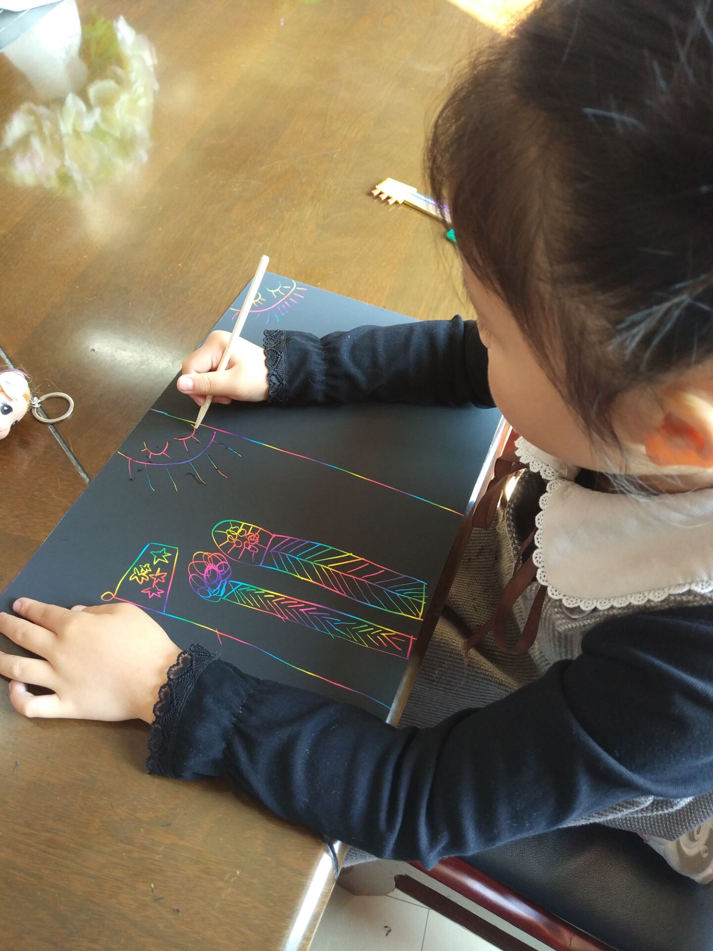 此次刮画活动,少儿们大胆创新,仔细勾勒,培养了孩子们创造性思维,提升其绘画水平,同时也增进小朋友间的感情,体验来自伙伴之间的温暖。从而让小朋友度过一个快乐,有意义的社区课堂。