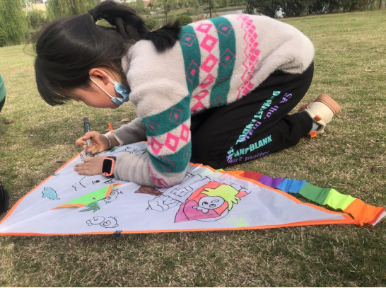 我们以约定的时间来到了桃花潭公园,到达地点后,活动时,阳光公益社工给大家讲解了关于风筝的起源,以及风筝的制作过程,孩子们听的聚精会神,紧接着社工就把准备好的白底风筝发给了孩子们,孩子们迫不及待的挥起了手中的画笔,一会儿功夫色彩斑斓的风筝就画好了,随后,小朋友们将自己亲手绘制的独一无二的风筝飞向蓝天,各色各样的风筝带着孩子的梦想飞上了天空,孩子们的脸上都露出了快乐的笑容。