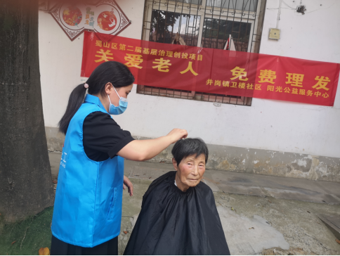 炎炎夏日,合肥的气温不断上升,为了让长者有一个清爽的发型,度过炎炎夏日。6月20日上午,井岗镇卫楼社居委联手合肥市蜀山区阳光公益服务中心,在卫楼新村小区开展“关爱老人,免费理发”志愿服务,为辖区65岁以上的老年人免费提供理发服务。