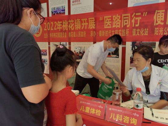 为了增强未成年人对健康的关注,普及健康生活小知识,积极探索以健康教育和预防保健为主的社区卫生服务,着力打造“健康桃花”,2022年7月23日,桃花镇联合合肥市蜀山区阳光公益服务中心链接辖区卫生健康资源,邀请合肥天使儿童医院、佳冠口腔医院在桃花镇文化站一楼大厅开展了“关爱儿童健康成长”的便民服务活动。